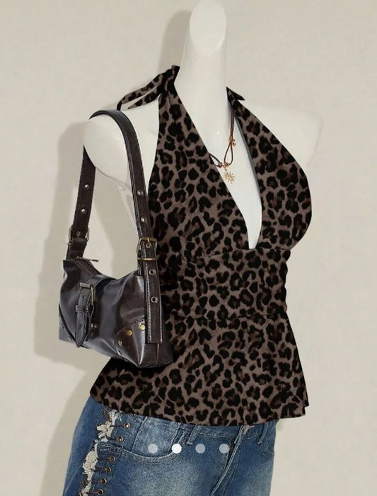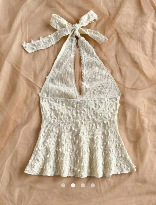 Pinstripe Halter Wrap Front Waistcoat // Blue