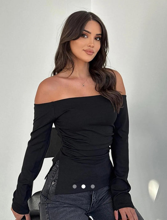 Off-S Full Sleeve Top (Thick Fabric) // Black