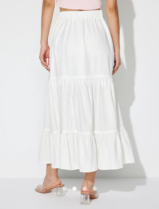 Regular price Rs. 1,099.00Regular priceUnit price perRs. 1,499.00Sale price Rs. 1,099.00Solid Tiered Skirt // White
