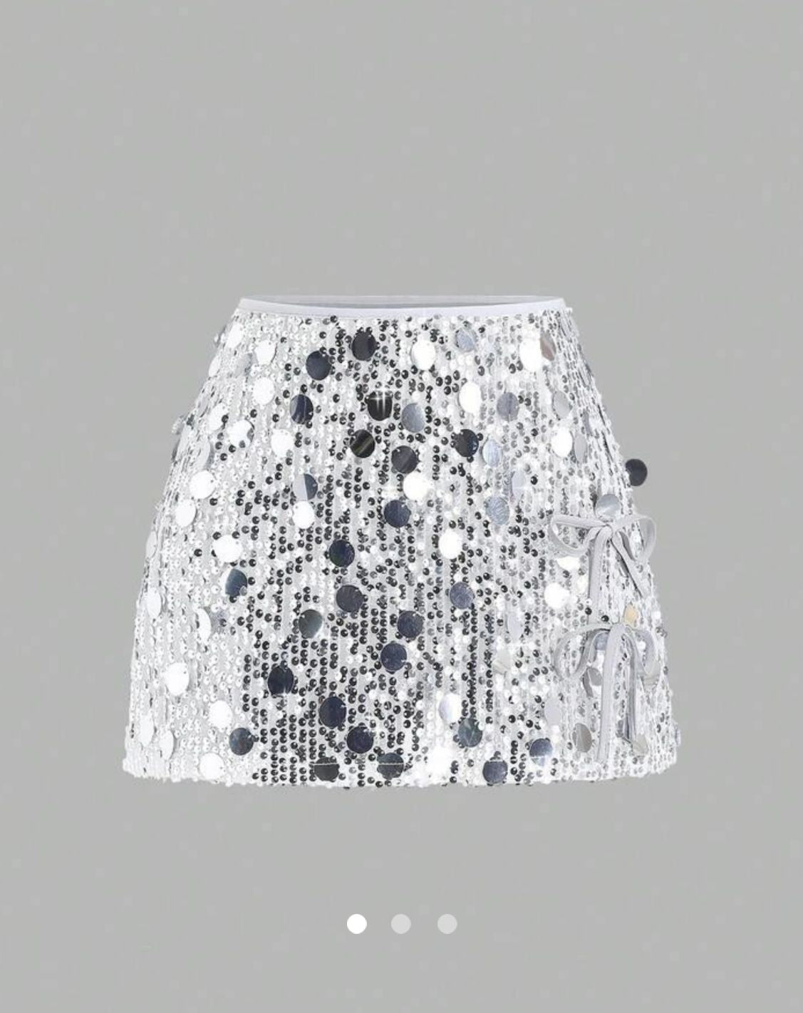 Regular price Rs. 1,149.00Regular priceUnit price perRs. 1,499.00Sale price Rs. 1,149.00Sequin Mini Skirt With Side Bow Tie // Silver