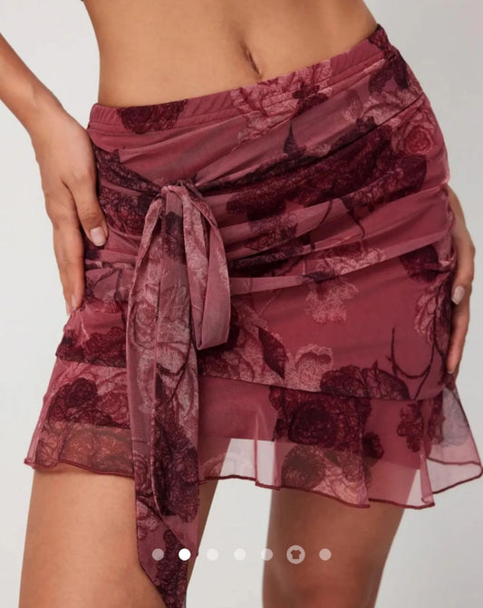 Regular price Rs. 1,099.00Regular priceUnit price perRs. 1,399.00Sale price Rs. 1,099.00Floral Print Tie-Front Ruched Skirt // Red