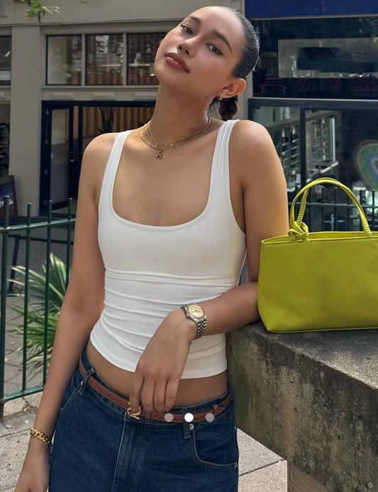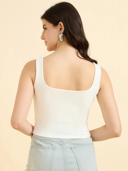 Regular price Rs. 549.00Regular priceUnit price perRs. 590.00Sale price Rs. 549.00Square Neck Tank Top (Slightly Sheer) // White