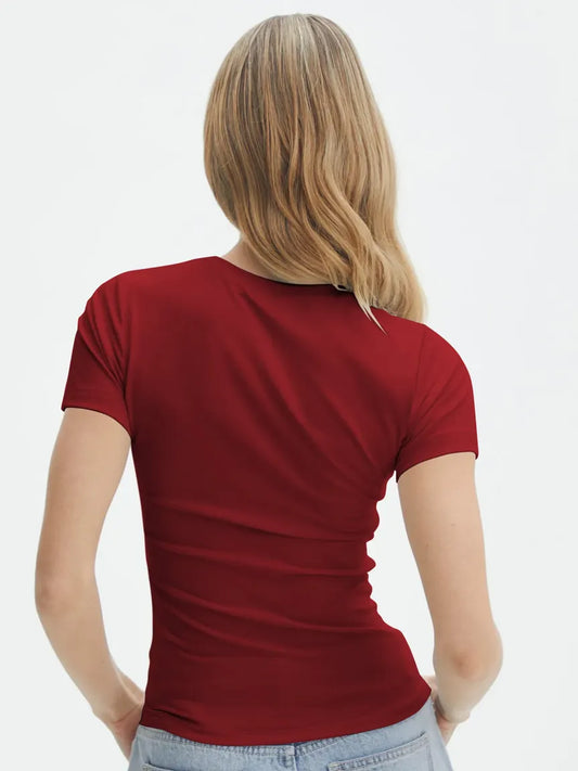 Regular price Rs. 590.00Regular priceUnit price perSale price Rs. 590.00Polyester Fitted Tee // Burgundy