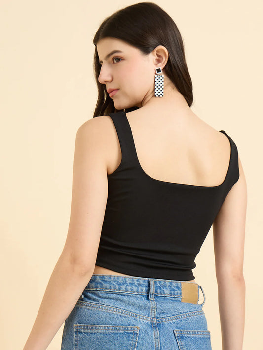 Polyester Square Neck Top // Black