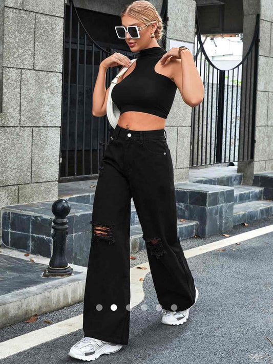 Regular price Rs. 1,649.00Regular priceUnit price perRs. 1,999.00Sale price Rs. 1,649.00Ripped Straight Leg Jeans 005 // Black
