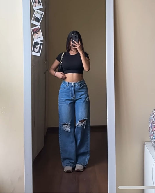 Regular price Rs. 1,649.00Regular priceUnit price perRs. 1,999.00Sale price Rs. 1,649.00High Waist Wide Leg Jeans 001 // Blue