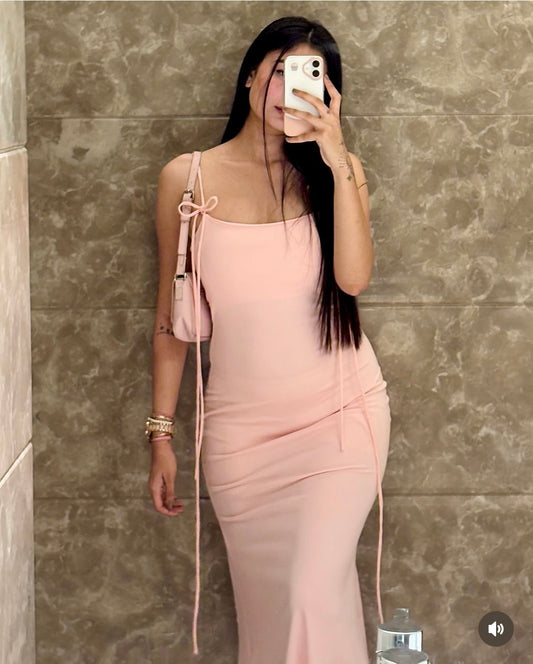 Regular price Rs. 1,999.00Regular priceUnit price perRs. 2,499.00Sale price Rs. 1,999.00DIAMOND LADY // Brietta Bow Slit Pink Dress