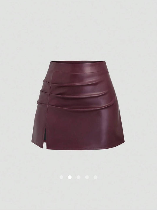 Faux Leather Gathered A-Line Skirt // Burgundy