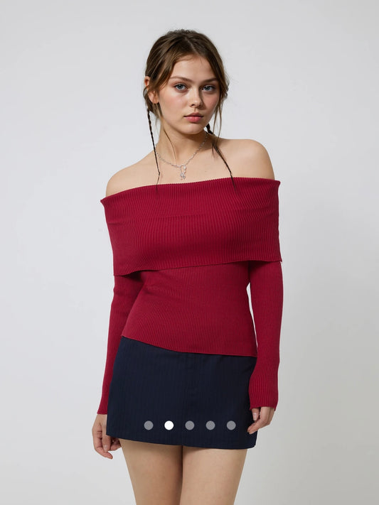 Regular price Rs. 1,199.00Regular priceUnit price perRs. 1,490.00Sale price Rs. 1,199.00Off Shoulder Knit Top // Red