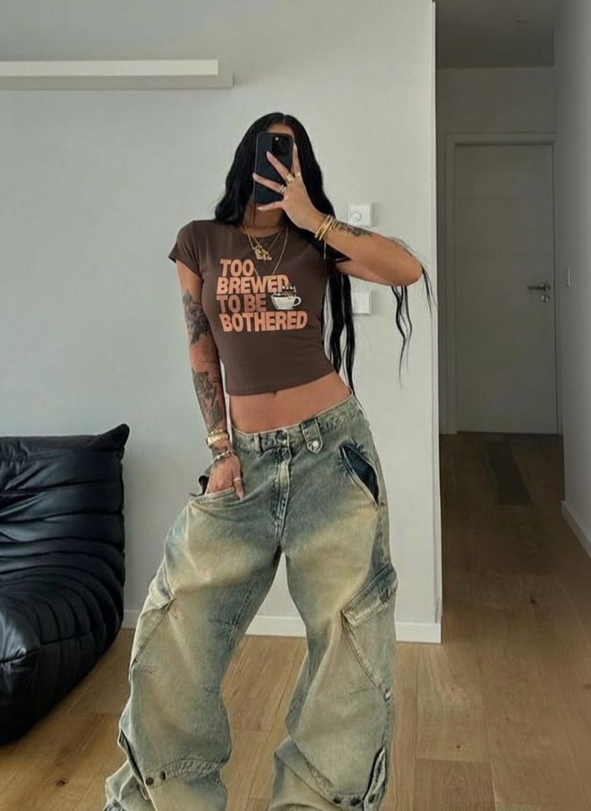 Too Brewed To Be Bothered Baby Tee // Brown