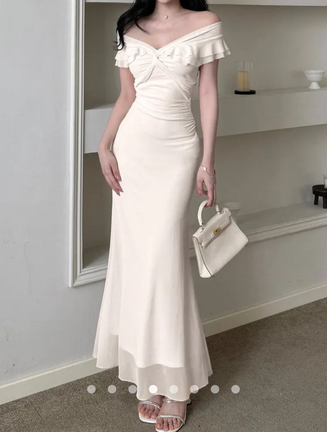 Ruffle Bodycon Dress // Beige